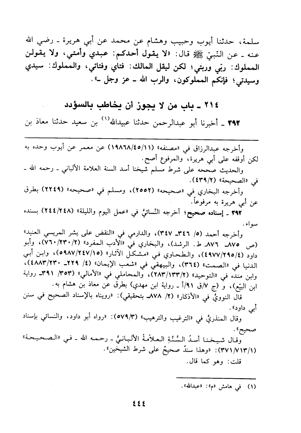 214 - باب من لا يجوز أن يخاطب بالسؤدد