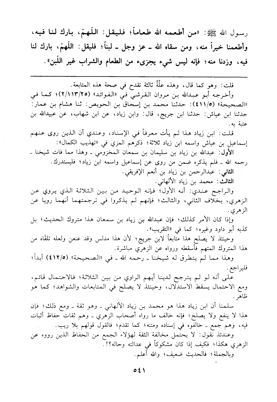 سلمنا أن ابن زياد هذا هو محمد بن زياد الألهاني -وهو ثقة- ومع ذلك؛ فإن هذا لا ينفع ولا يصلح؛ فإنه خالف ما رواه أصحاب الزهري -وهم ثقات حفاظ أثبات فيه، وهم جمع- خالفوه في إسناده ومتنه، كما تقدم، فالقول قولهم بلا ريب.