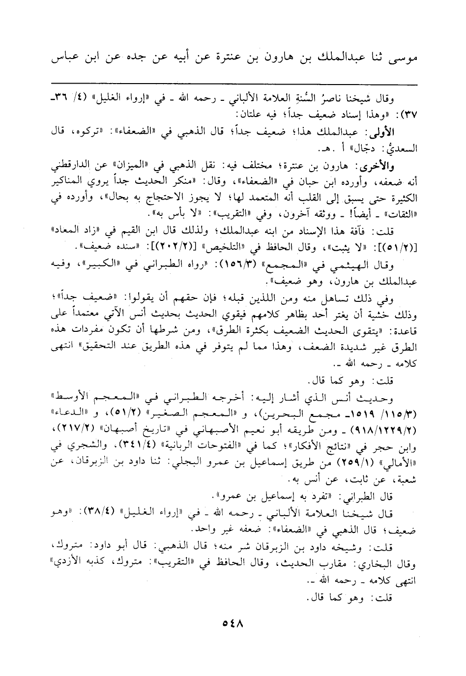 قال شيخنا العلامة الألباني - رحمه الله - في "إرواء الغليل" (4/ 38). "وهو ضعيف؛ قال الذهبي في "الضعفاء": ضعفه غير واحد.