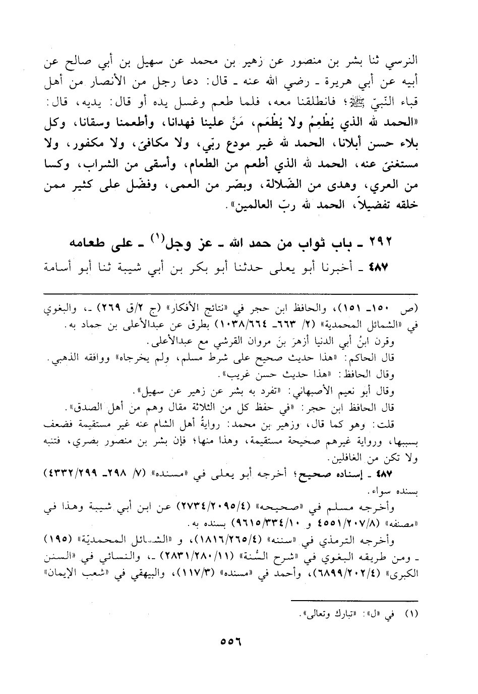 292 - باب ثواب من حمد الله -عَزَّ وَجَلَّ (¬1) - على طعامه