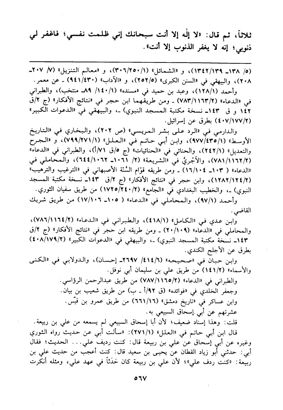 والدارمي في "الرد على بشر المريسي" (ص 202)، والبخاري في "التاريخ الأوسط" (1/ 435 / 977)، وابن أبي حاتم في "العلل" (1/ 271 / 799)، و"الجرح والتعديل" (1/ 242)، والحنائي في "الحنائيات" (ج 5 / ق 71/ أ)، والطبراني في "الدعاء" (2/ 1162 / 781)، والآجُريُّ في "الشريعة" (2/ 1061 - 1062/ 644)، والمحاملي في "الدعاء" (103 - 104/ 16) -ومن طريقه قوّام السُّنَة الأصبهاني في "الترغيب والترهيب" (2/ 124/ 1282)، وابن حجر في "نتائج الأفكار" (ج 2 / ق 143 - نسخة مكتبة المسجد النبوي) -, والخطيب البغدادي في "الجامع" (2/ 240/ 1725) من طريق سفيان الثوري.