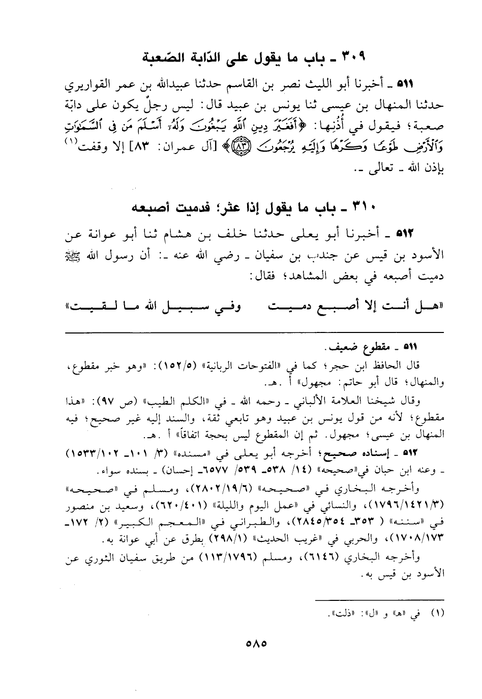 310 - باب ما يقول إذا عثر؛ فدميت أصبعه
