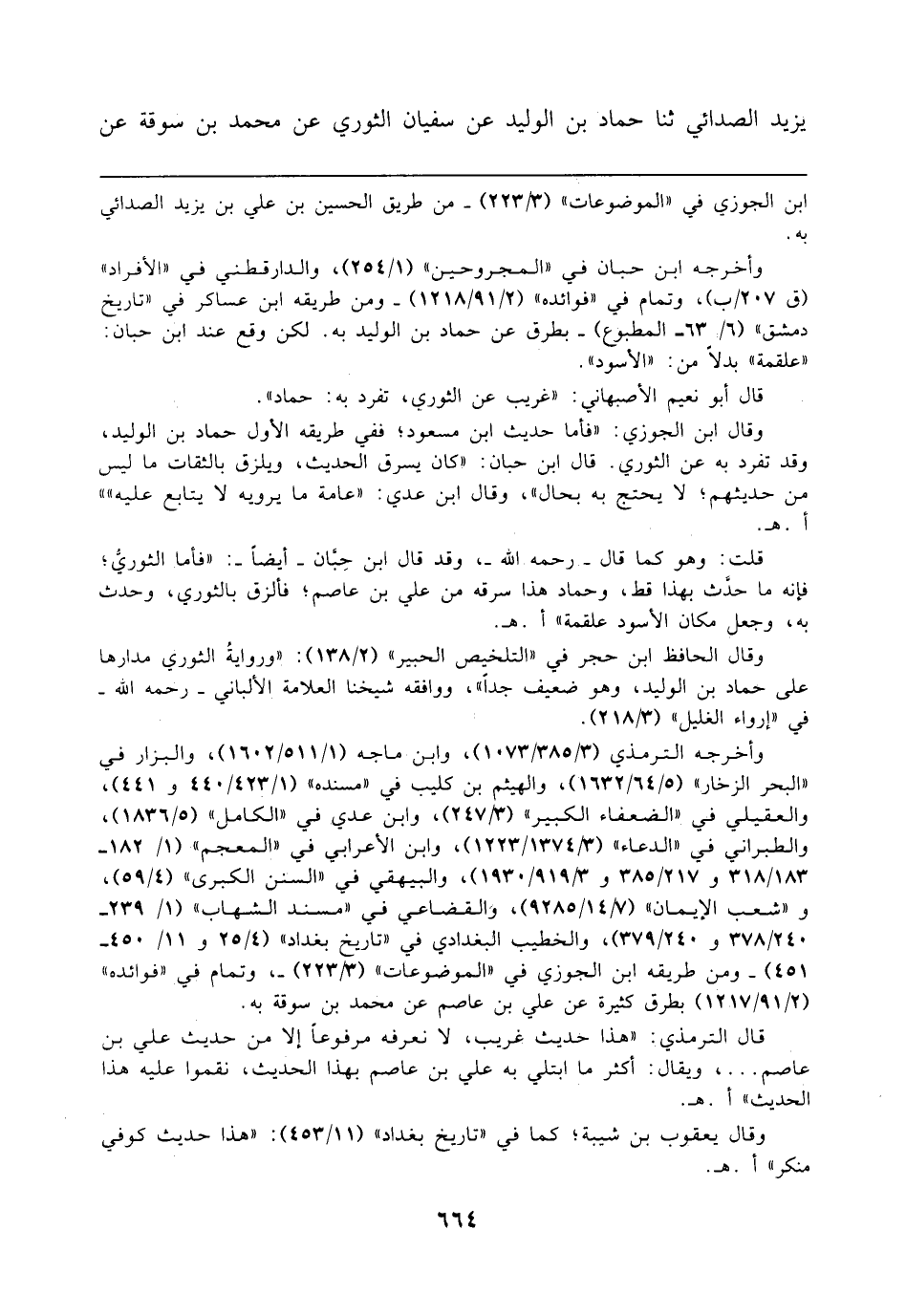 قال أبو نعيم الأصبهاني: "غريب عن الثوري، تفرد به: حماد".