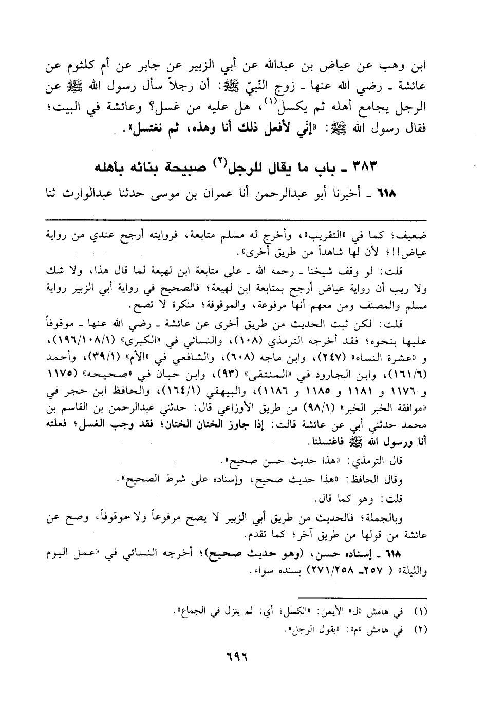 قلت: لو وقف شيخنا - رحمه الله - على متابعة ابن لهيعة لما قال هذا, ولا شك ولا ريب أن رواية عياض أرجح بمتابعة ابن لهيعة، فالصحيح في رواية أبي الزبير رواية مسلم والمصنف ومن معهم أنها مرفوعة، والموقوفة؛ منكرة لا تصح.
