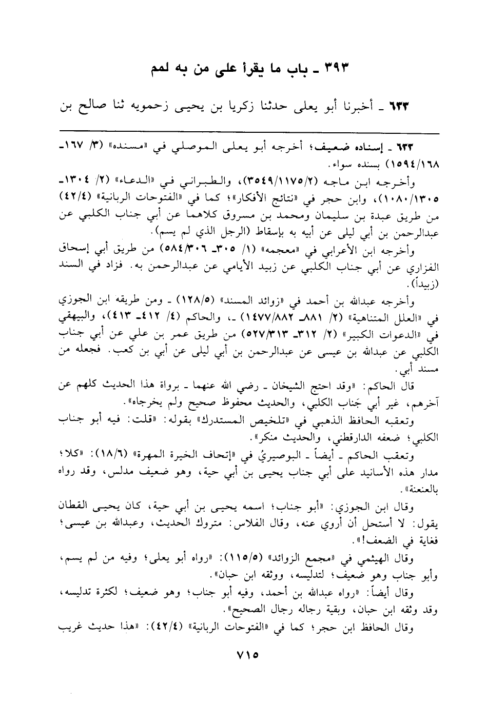633 - أخبرنا أبو يعلى حدثنا زكريا بن يحيى زحمويه ثنا صالح بن