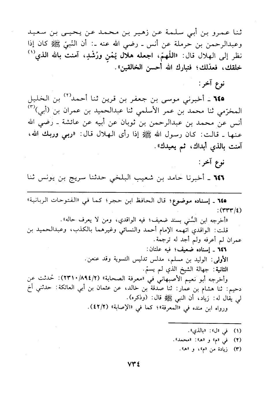 ثنا عمرو بن أبي سلمة عن زهير بن محمد عن يحيى بن سعيد وعبد الرحمن بن حرملة عن أنس - رضي الله عنه -: أن النّبيّ - صلى الله عليه وسلم - كان إذا نظر إلى الهلال قال: "اللهمّ، اجعله هلال يُمْنٍ ورُشْدٍ، آمنت بالله الذي (¬1) خلقك، فعدّلك؛ فتبارك الله أحسن الخالقين".