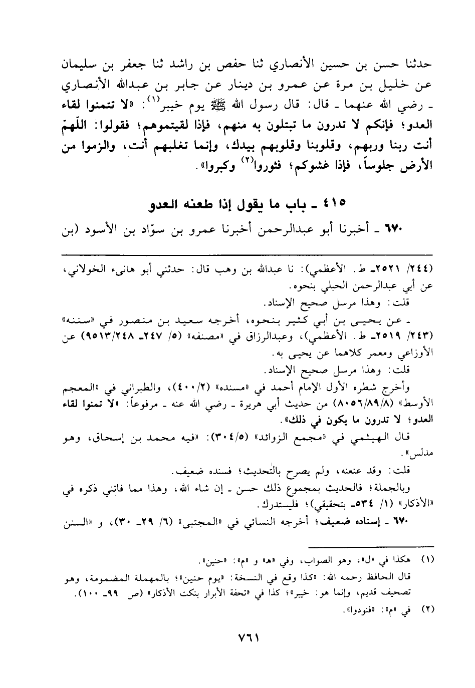 415 - باب ما يقول إذا طعنه العدو