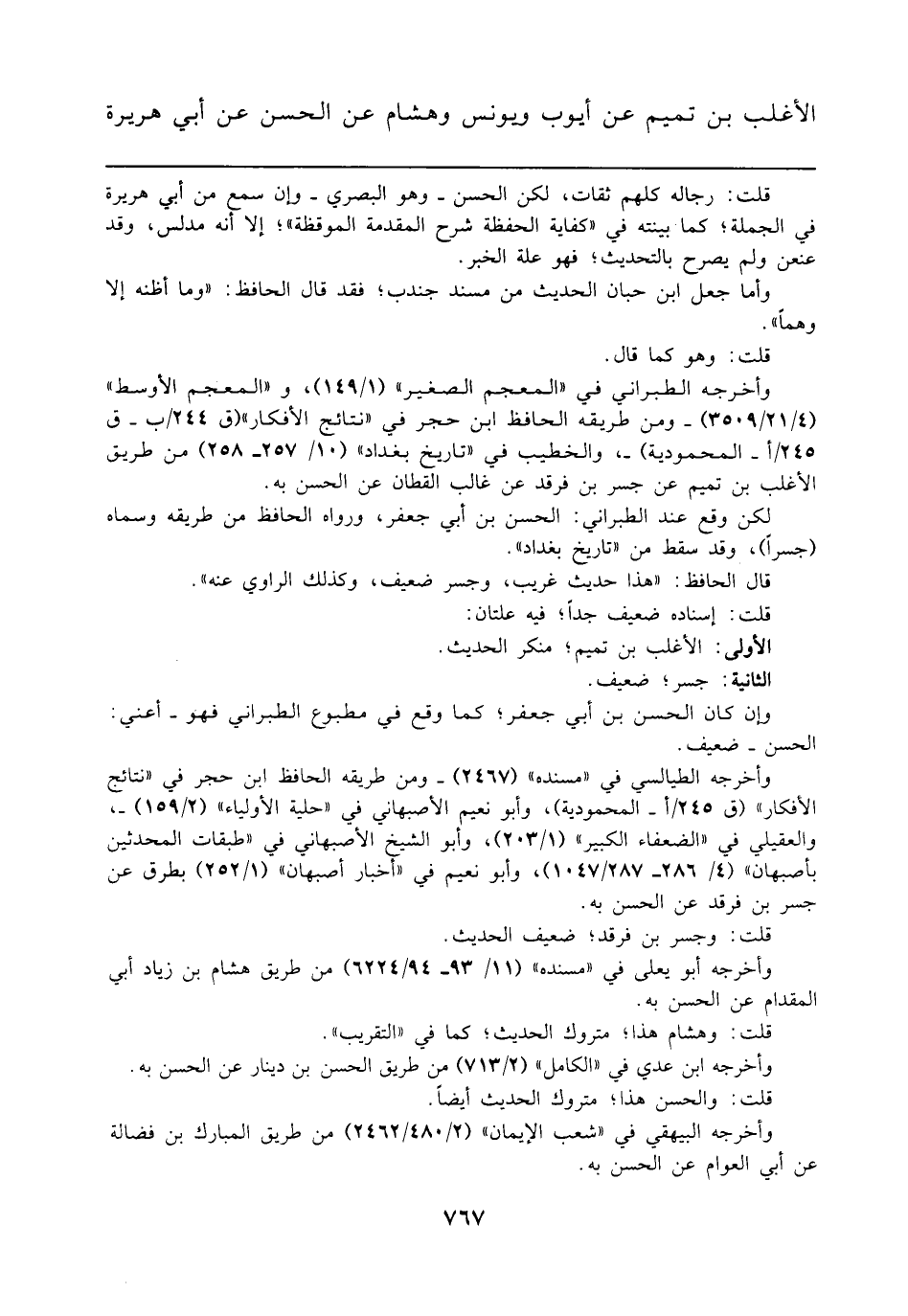 الأغلب بن تميم عن أيوب ويونس وهشام عن الحسن عن أبي هريرة