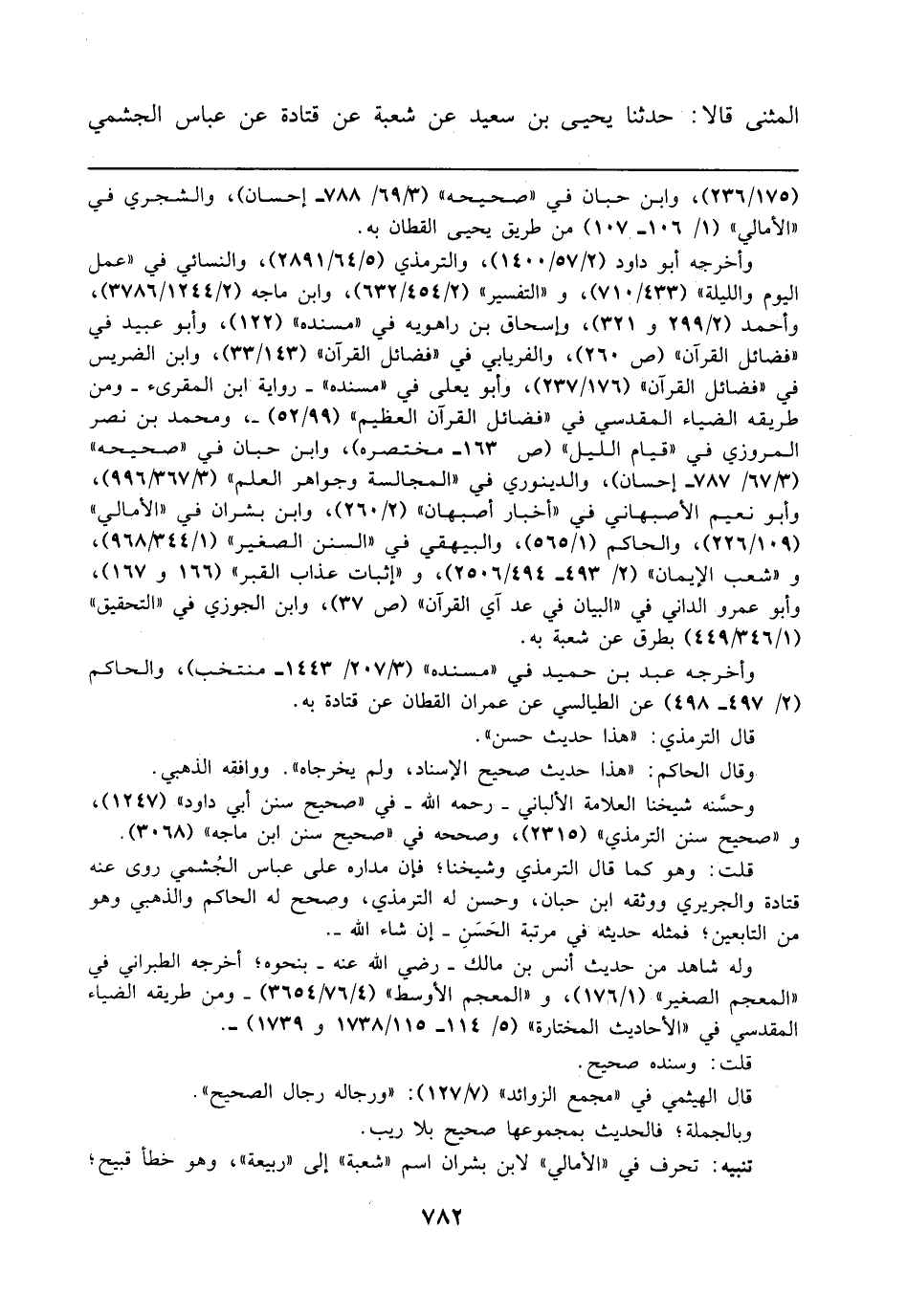 (175/ 236)، وابن حبان في "صحيحه" (3/ 69/ 788 - إحسان)، والشجري في "الأمالي" (1/ 106 - 107) من طريق يحيى القطان به.