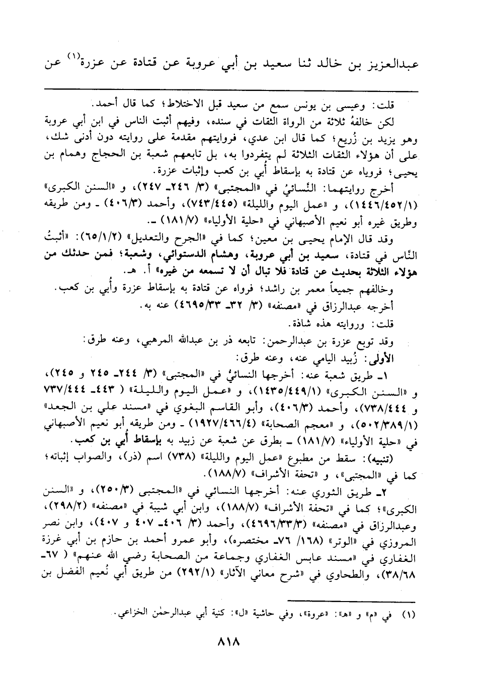 (¬1) في "م" و"هـ": "عروة"، وفي حاشة "ل": كنية أبي عبد الرحمن الخزاعي.