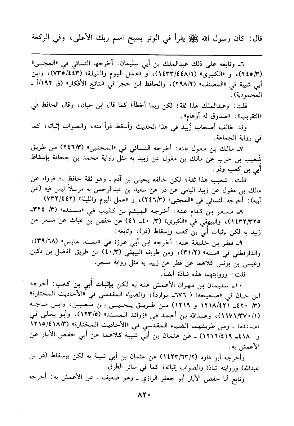 6 - وتابعه على ذلك عبد الملك بن أبي سليمان: أخرجها النسائي في "المجتبى" (3/ 245)، و"الكبرى" (1/ 448/ 1433)، و"عمل اليوم والليلة" (443/ 735)، وابن أبي شيبة في "المصنف" (2/ 298)، والحافظ ابن حجر في "نتائج الأفكار" (ق 192/أ - المحمودية).