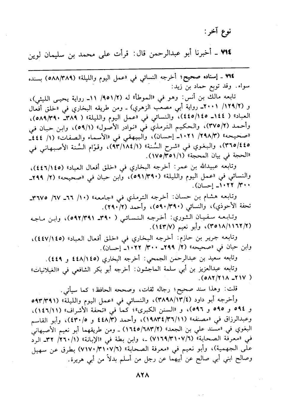 714 - أخبرنا أبو عبد الرحمن قال: قرأت على محمد بن سليمان لوين