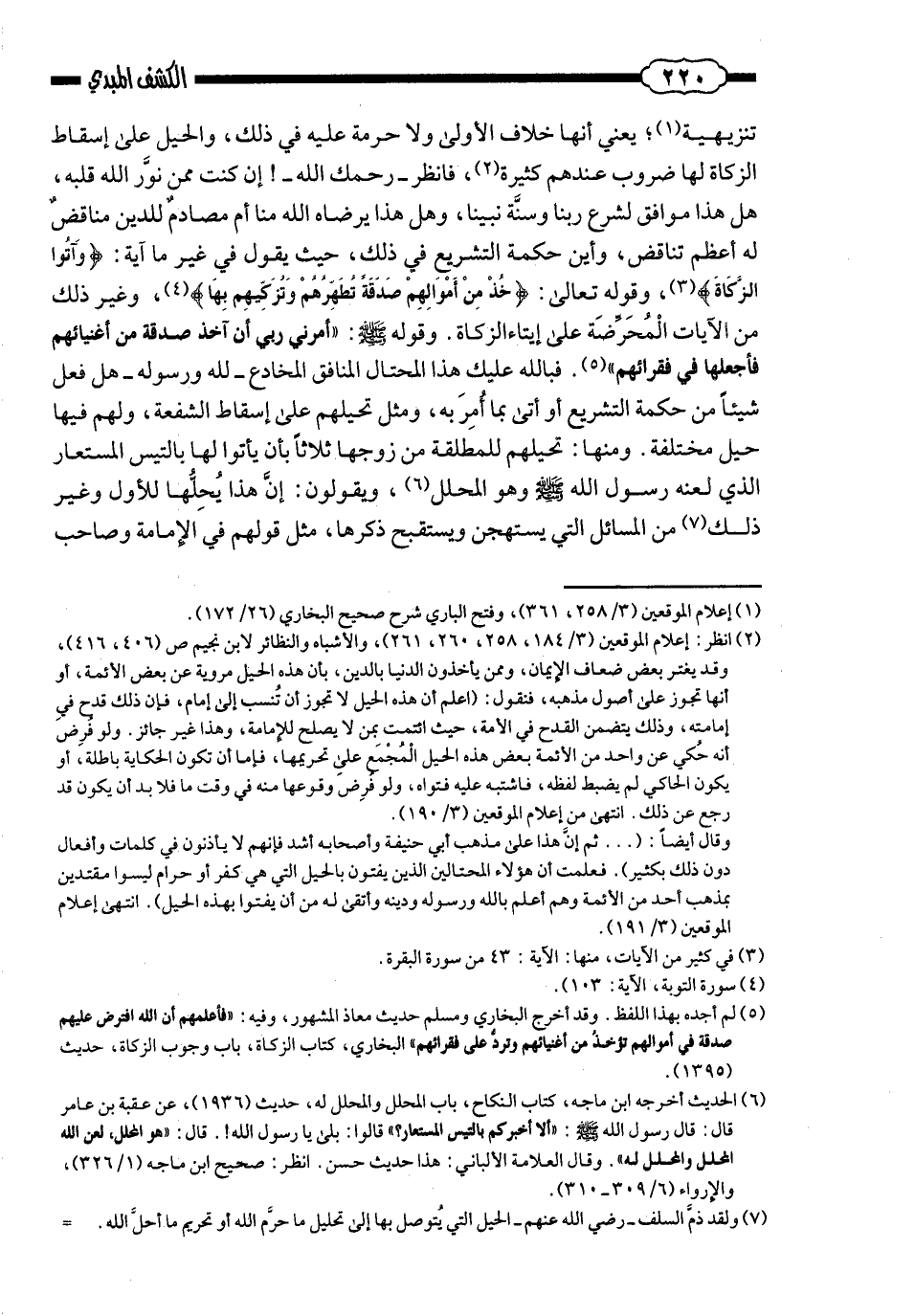 تنزيهيّة؛ يعني: أنّها خلاف الأولى، ولا حرمة عليه في ذلك! والحيل على إسقاط الزّكاة لها ضروب عندهم كثيرة؛ فانظر ـ رحمك الله ـ إن كنتَ ممّن نوّر الله قلبه؛ هل هذا موافق لشرع ربّنا وسُنّة نبيّنا؟! وهل هذا يرضاه الله منّا أم مصادم للدّين مناقض له أعظم تناقض؟! وأين حكمة التّشريع في ذلك؛ حيث يقول في غير ما آية: «وآتوا الزّكاة» ، وقوله ـ تعالى ـ: {خذ من أموالهم صدقة تطّهرهم وتزكّيهم بها} ، وغير ذلك من الآيات المحرّضة على إيتاء الزّكاة، وقوله صلى الله عليه وسلم: «أمرني ربي أن آخذ صدقة من أغنيائهم فأجعلها في فقرائهم» ؟! فبالله عليك؛ هذا المحتال المنافق المخادع ـ لله ورسوله ـ هل فعل شيئًا من حكمة التّشريع أو أتى بما أُمِرَ به.