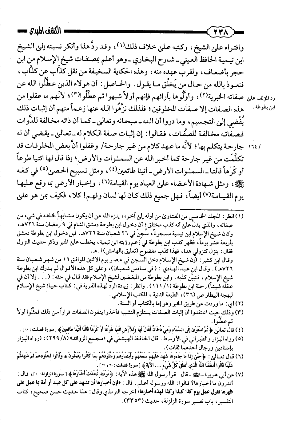 وافتراء على الشّيخ؛ وكتبه على خلاف ذلك، وقد ردّ هذا وأنكر نسبته إلى الشّيخ ابن تيميّة الحافظ العينيّ ـ شارح البخاريّ ـ، وهو أعلم بمصنّفات شيخ الإسلام من ابن حجر بأضعاف، ولقرب عهده منه. وهذه الحكاية السّخيفة من نقل كذّاب عن كذّاب؛ فنعوذ بالله من حال مَن يخلق ما يقول.