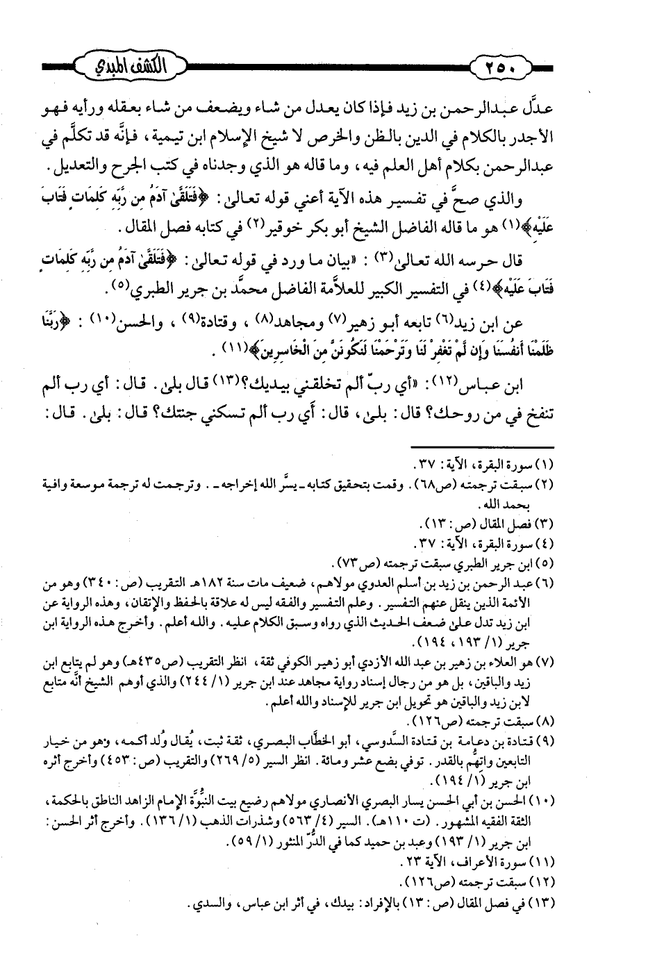 «بيان ما ورد في قوله ـ تعالى ـ: {فلتقّى آدم من ربه كلمات فتاب عليه} ، في التّفسير الكبير للعلّامة الفاضل محمّد بن جرير الطبريّ: