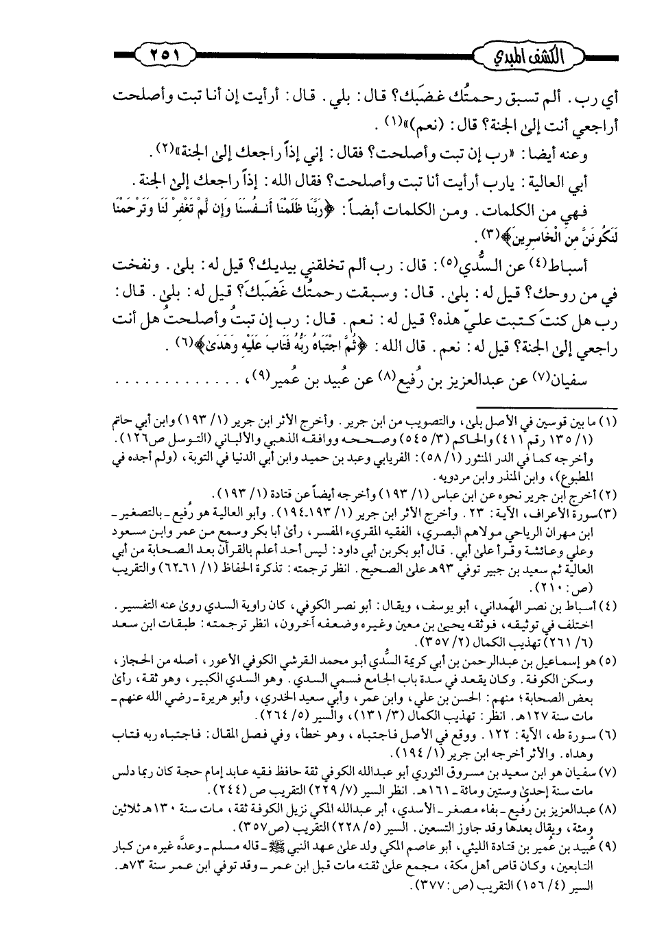 أبي العالية: «يا ربّ؛ أرأيتَ أنا تُبتُ وأصلحتُ؟ فقال الله: إذًا راجعك إلى الجنّة» .
