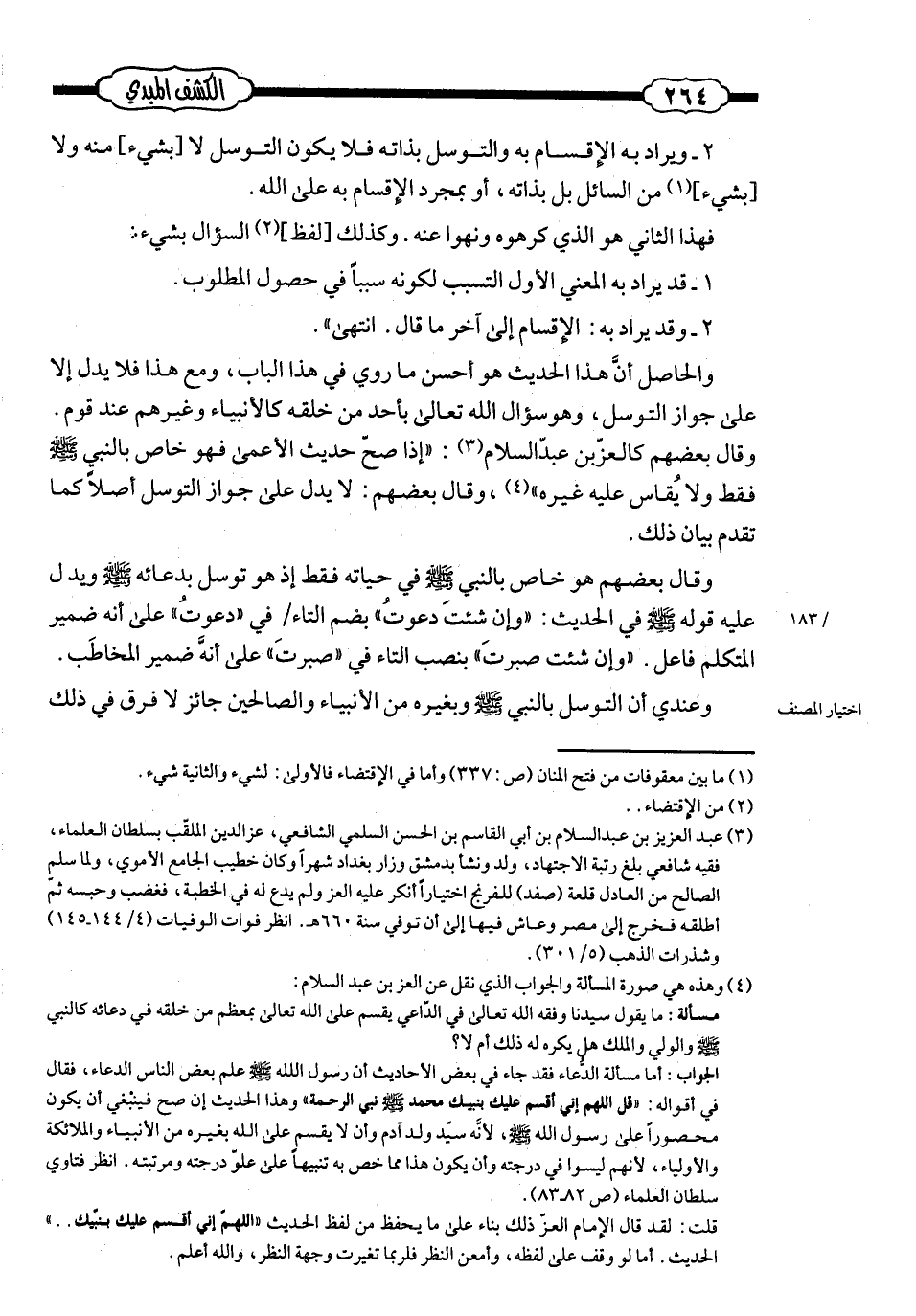 2ـ ويراد به: الإقسام به والتّوسّل بذاته؛ فلا يكون التّوسّل لا [بشيء] منه ولا [بشيء] من السّائل؛ بل بذاته، أو بمجرّد الإقسام به على الله.
