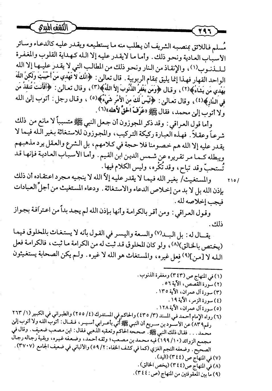 وأمّا قول العراقيّ: «وقد ذكر المجوّزون أنّ جعل النّبيّ صلى الله عليه وسلم متسبّبًا لا مانع من ذلك شرعًا وعقلًا» ؛ فهذه العبارة ركيكة التّركيب! والمجوّزون للاستغاثة بغير الله فيما لا يقدر عليه إلَّا الله هم خصومنا؛ فلا حُجّة في كلامهم؛ بل الشّرع والعقل يرد مذهبهم ويبطله ـ كما مرّ تقريره عن شمس الدّين ابن القيّم ـ، وأمّا الأسباب العاديّة؛ فإنّها قد تُستحبّ وقد تُباح وقد تُكره، وليس الكلام فيها.