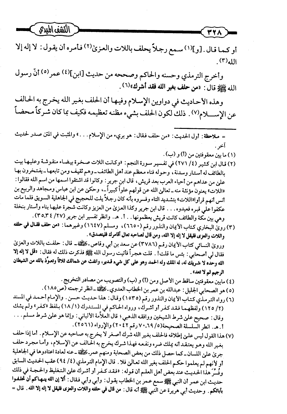 أو كما قال ـ. [و] سمع رجلًا يحلف باللّات والعزّى؛ فأمره أن يقول: لا إله إلَّا الله.