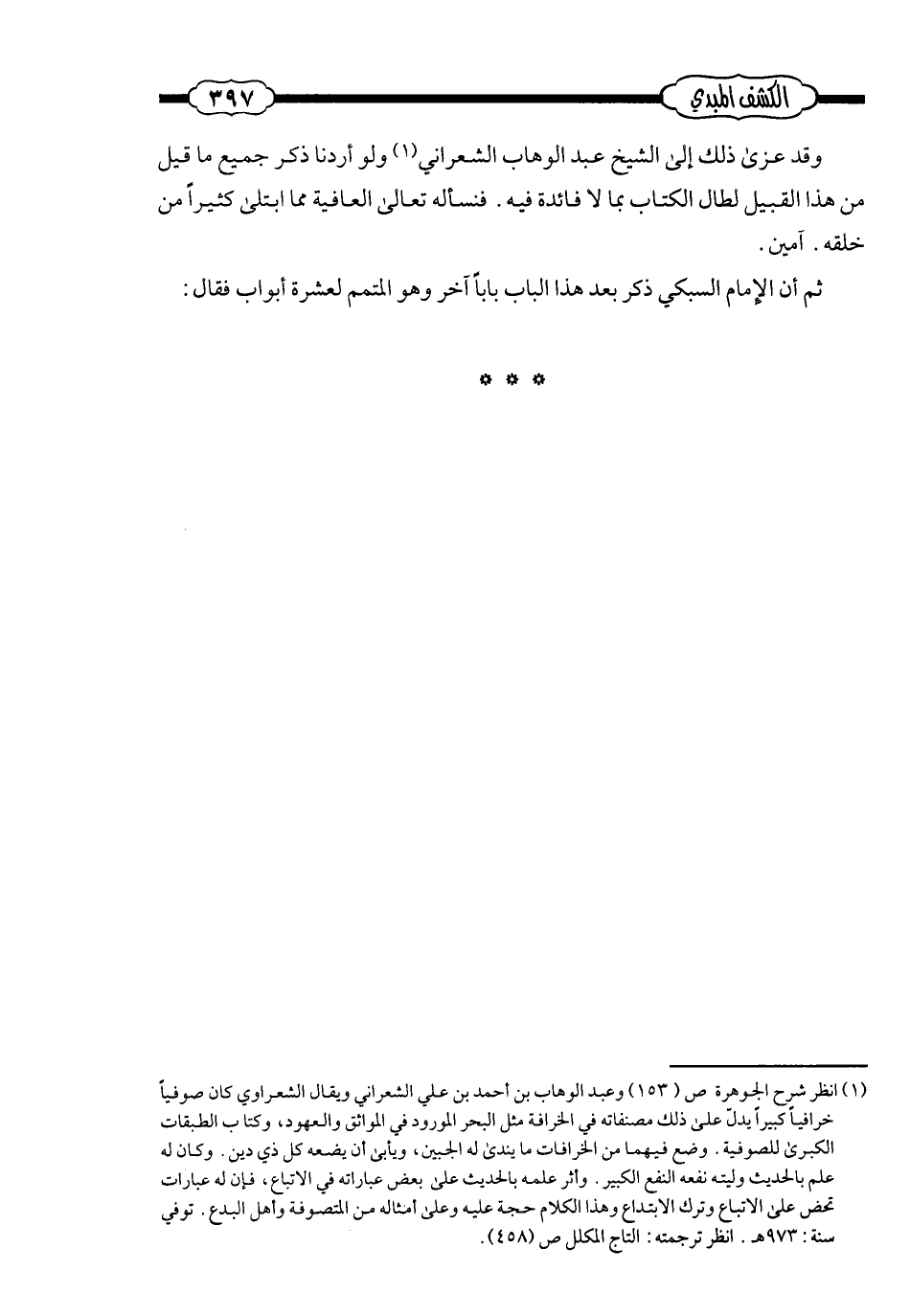 وقد عزى ذلك إلى الشّيخ عبد الوهّاب الشّعرانيّ. ولو أردنا ذكر جميع ما قيل من هذا القبيل؛ لطال الكتاب بما لا فائدة فيه. فنسأله ـ تعالى ـ العافية مما ابتلى كثيرًا من خلقه، آمين.