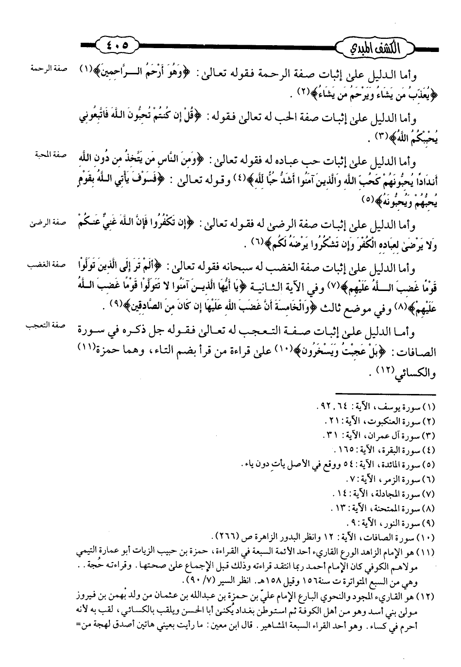 وأمّا الدّليل على إثبات صفة التّعجّب له ـ تعالى ـ: فقوله ـ جلّ ذكره ـ في سورة (الصّافّات) : {بل عجبت ويسخرون} ـ على قراءة مَن قرأ بضم التّاء؛ وهما: حمزة والكسائيّ ـ.