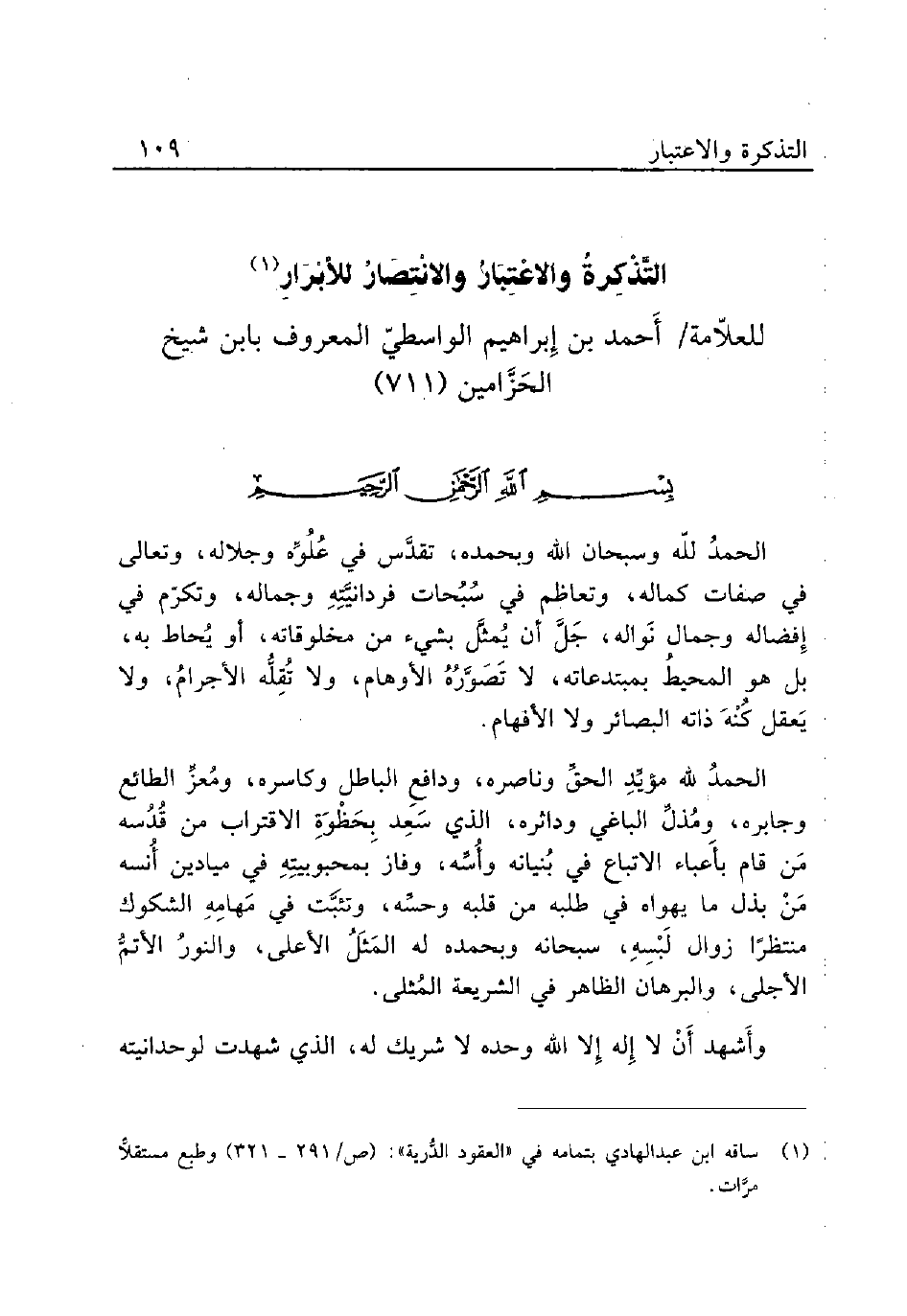 التَّذْكِرةُ والاعْتِبَارُ والانْتِصَارُ للأبْرَارِ (¬1)
