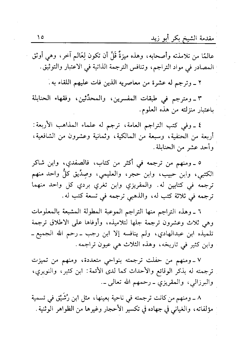7 - ومنهم من حفلت ترجمته بنواحي متعددة، ومنهم من تميزت ترجمته له بذكر الوقائع والأحداث كما لدى الأئمة: ابن كثير، والنويري، والبرزالي، والمقريزي -رحمهم الله تعالى-.