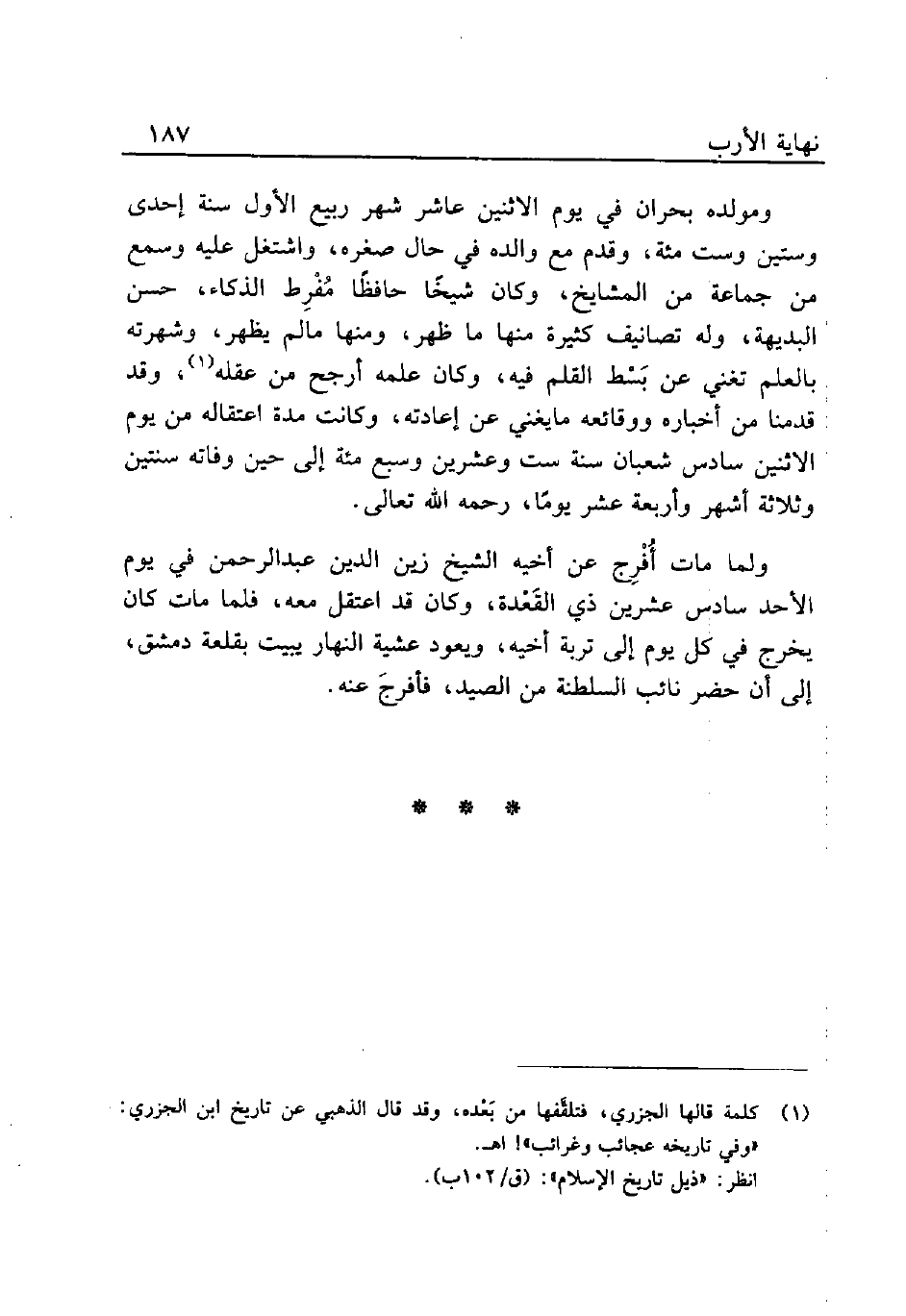 (¬1) كلمة قالها الجزري، فنلقَّفها من بَعْده، وقد قال الذهبي عن تاريخ ابن الجزري: "وفي تاريخه عجائب وغرائب"! اهـ.