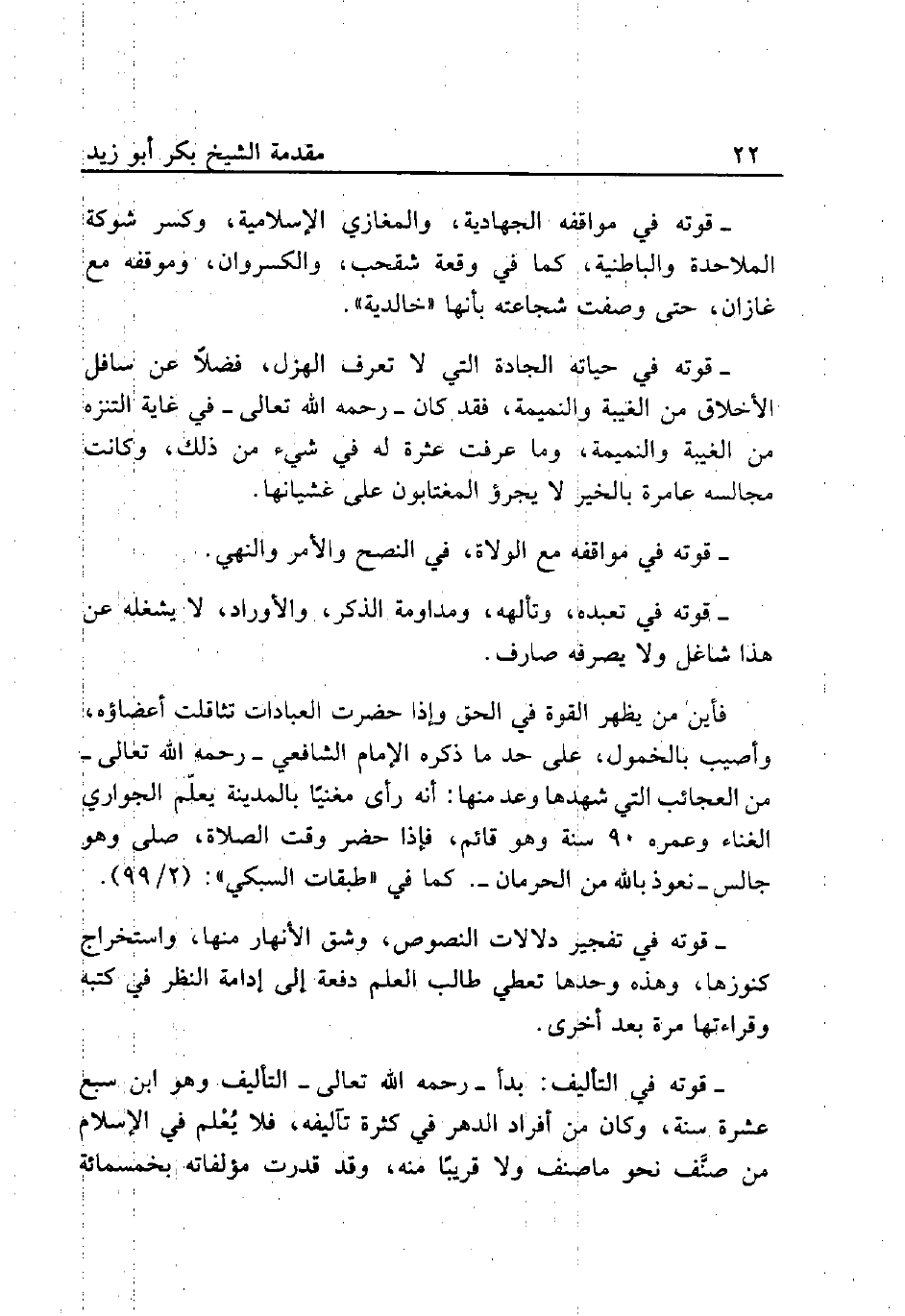 - قوته في حياته الجادة التي لا تعرف الهزل، فضلًا عن سافل الأخلاق من الغيبة والنميمة، فقد كان -رحمه الله تعالى- في غاية التنزه من الغيبة والنميمة، وما عرفت عثرة له في شيء من ذلك، وكانت مجالسه عامرة بالخير لا يجرؤ المغتابون على غشيانها.