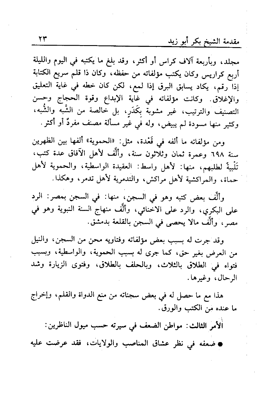 مجلد، وبأربعة آلاف كراس أو أكثر، وقد بلغ ما يكتبه في اليوم والليلة أربع كراريس وكان يكتب مؤلفاته من حفظه، وكان ذا قلم سريع الكتابة إذا رقم، يكاد يسابق البرق إذا لمع، لكن كان خطه في غاية التعليق والإغلاق. وكانت مؤلفاته في غاية الإبداع وقوة الحجاج وحسن التصنيف والترتيب، غير مشوبة بِكَدَرٍ، بل خالصة من الشَّبه والشُّبه، وكثير منها مسودة لم يبيض، وله في غير مسألة مصنف مفردٌ أو أكثر.