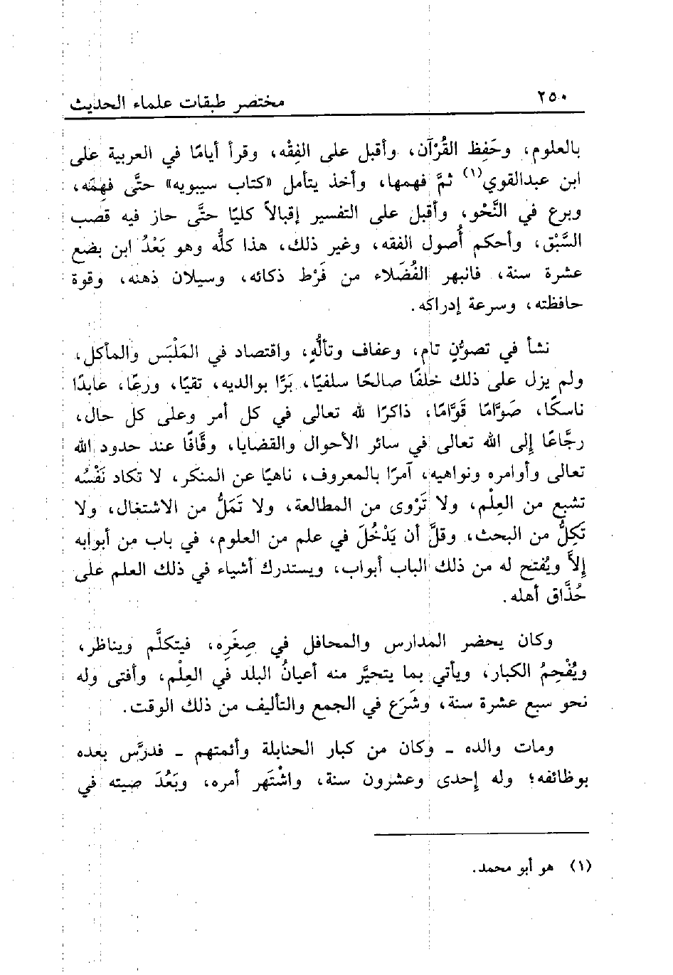 بالعلوم، وحَفِظ القُرْآن، وأقبل على الفِقْه، وقرأ أيامًا في العربية على ابن عبد القوي (¬1) ثمَّ فهمها، وأخذ يتأمل «كتاب سيبويه» حتَّى فهِمَه، وبرع في النَّحْو، وأقبل على التفسير إقبالاً كليًا حتَّى حاز فيه قصب السَّبْق، وأحكم أُصول الفقه، وغير ذلك، هذا كلُّه وهو بَعْدُ ابن بضع عشرة سنة، فانبهر الفُضَلاء من فَرْط ذكائه، وسيلان ذهنه، وقوة حافظته، وسرعة إدراكه.