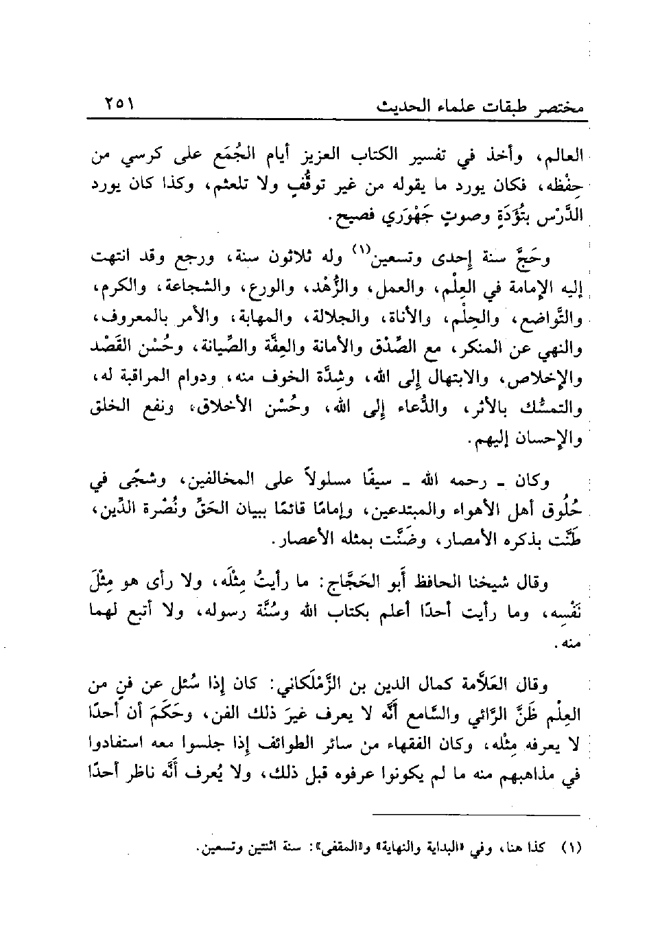 وكان - رحمه الله - سيفًا مسلولاً على المخالفين، وشجًى في حُلُوق أهل الأهواء والمبتدعين، وإمامًا قائمًا ببيان الحَقِّ ونُصْرة الدِّين، طَنَّت بذكره الأمصار، وضَنَّت بمثله الأعصار.