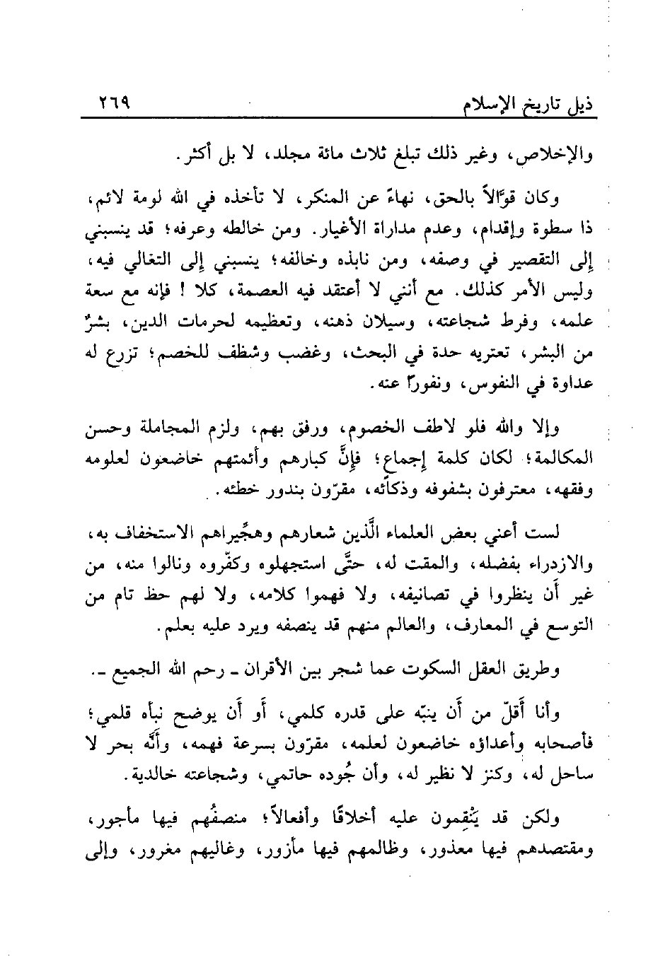 لست أعني بعض العلماء الَّذين شعارهم وهجِّيراهم الاستخفاف به، والازدراء بفضله، والمقت له، حتَّى استجهلوه وكفّروه ونالوا منه، من غير أَن ينظروا في تصانيفه، ولا فهموا كلامه، ولا لهم حظ تام من التوسع في المعارف، والعالم منهم قد ينصفه ويرد عليه بعلم.
