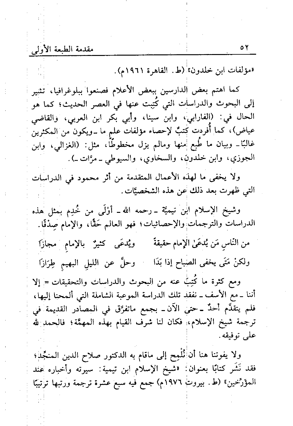 ومع كثرة ما كُتِبَ عنه من البحوث والدراسات والتحقيقات = إلا أننا -مع الأسف- نفقد تلك الدراسة الموعبة الشاملة التي ألمحنا إليها، فلم يتقدَم أحدٌ -حتى الآن- بجمع ما تفرَّق في المصادر القديمة في ترجمة شيخ الإِسلام، فكان لنا شرف القيام بهذه المهمة؛ فالحمد لله على توفيقه.