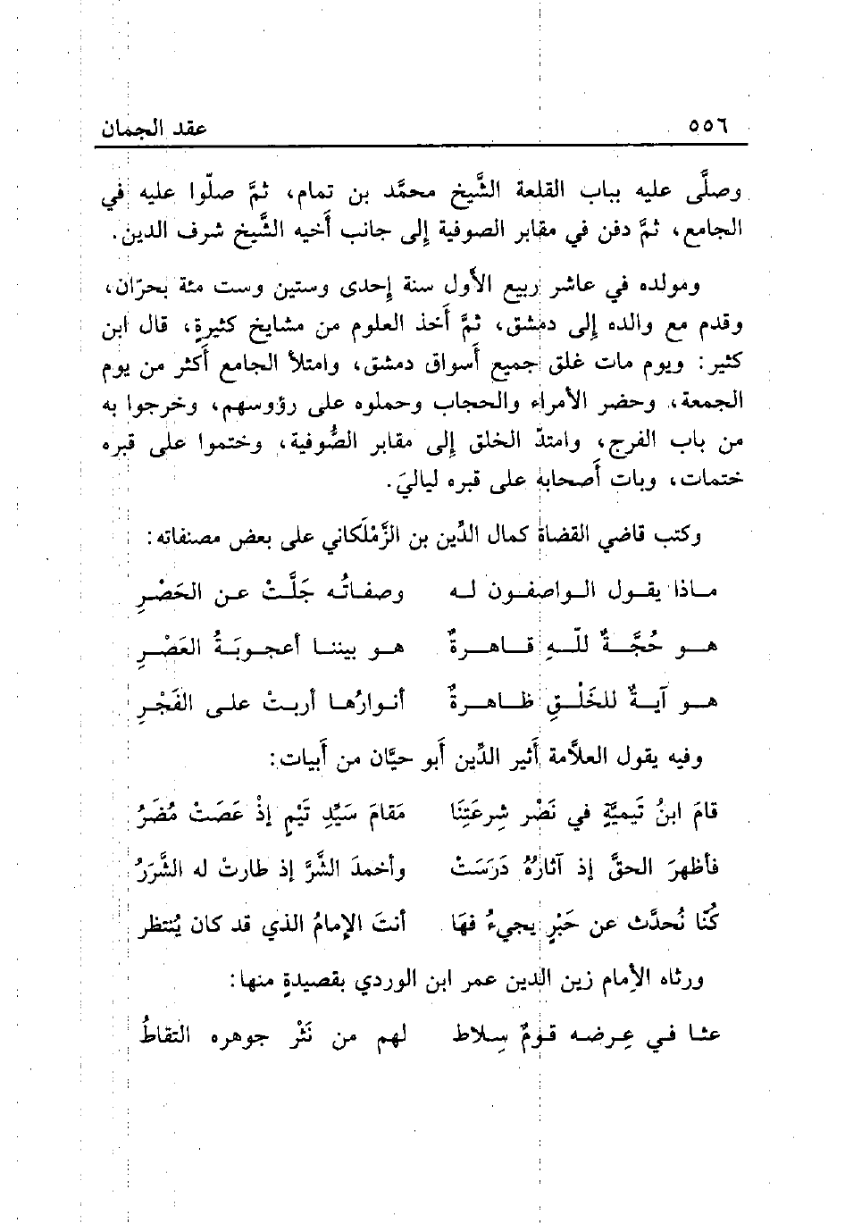 ورثاه الإِمام زين الدين عمر ابن الوردي بقصيدةٍ منها: