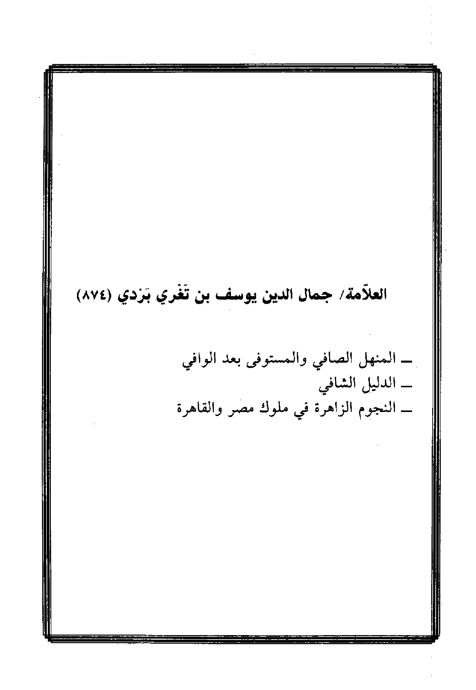 العلاّمة/ جمال الدين يوسف بن تَغْري بَرْدي (874)