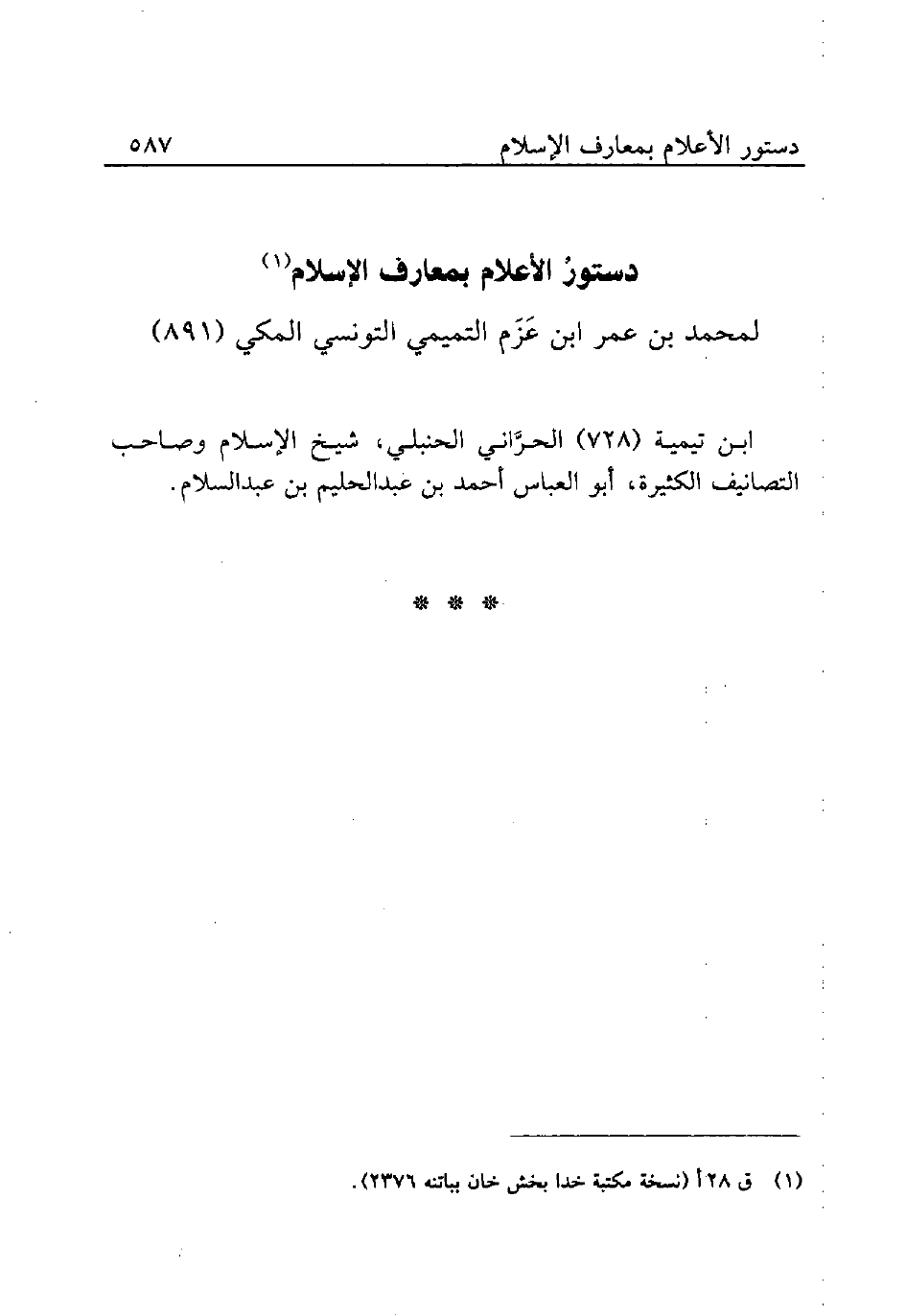 دستورُ الأعلام بمعارف الإسلام (¬1)