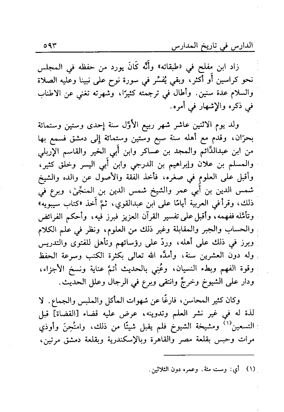 زاد ابن مفلح في «طبقاته» وأَنَّه كَانَ يورد من حفظه في المجلس نحو كراسين أَو أكثر، وبقي يُفسِّر في سورة نوح على نبينا وعليه الصلاة والسلام عدة سنين. وأطال في ترجمته كثيرًا، وشهرته تغني عن الاطناب في ذكره والإِشهار في أمره.