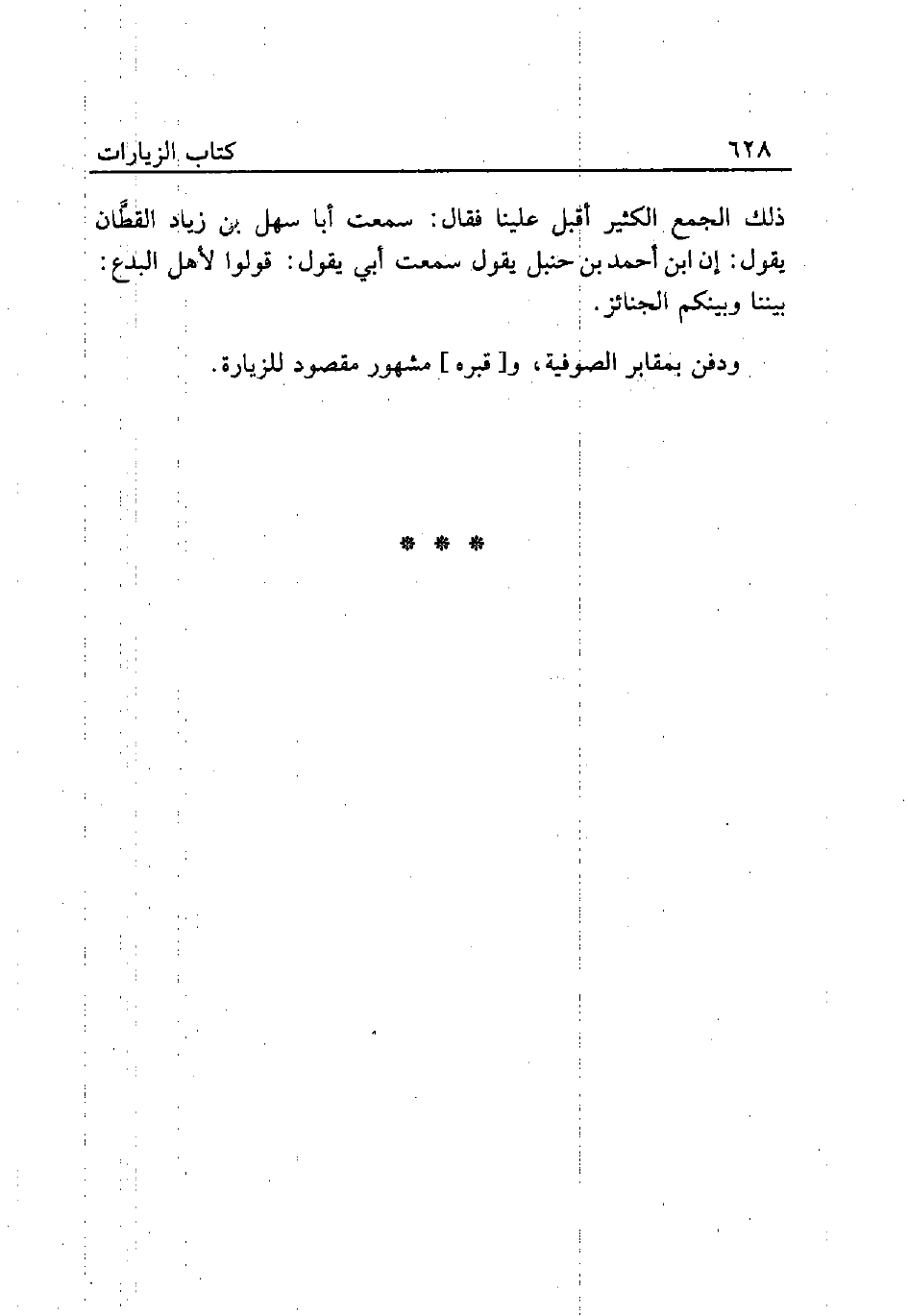 ذلك الجمع الكثير أقبل علينا فقال: سمعت أبا سهل بن زياد القطَّان يقول: إن ابن أحمد بن حنبل يقول سمعت أبي يقول: قولوا لأهل البدع: بيننا وبينكم الجنائز.