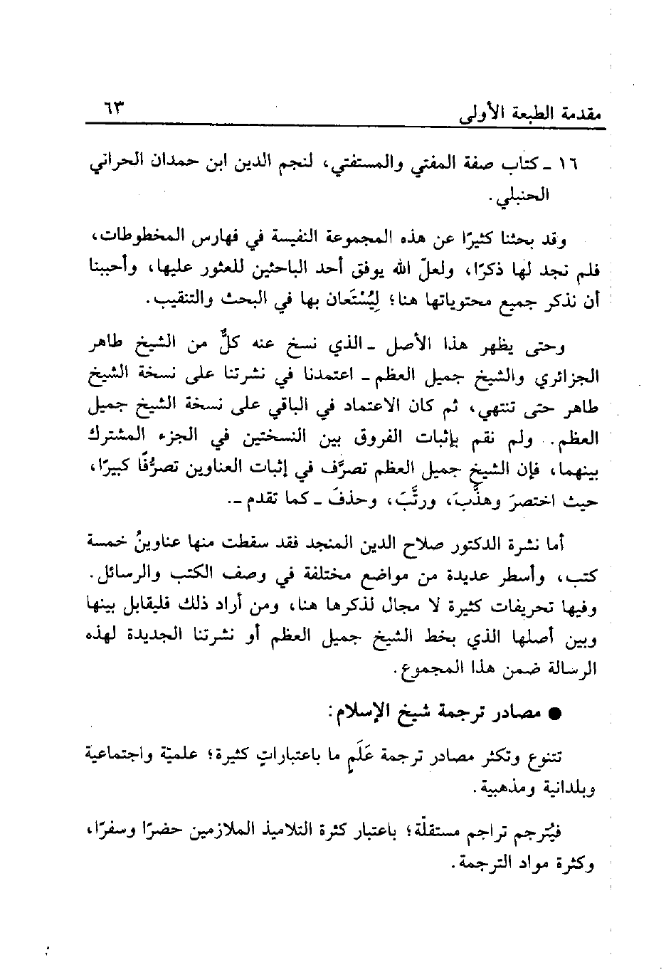 16 - كتاب صفة المفتي والمستفتي، لنجم الدين ابن حمدان الحراني الحنبلي.