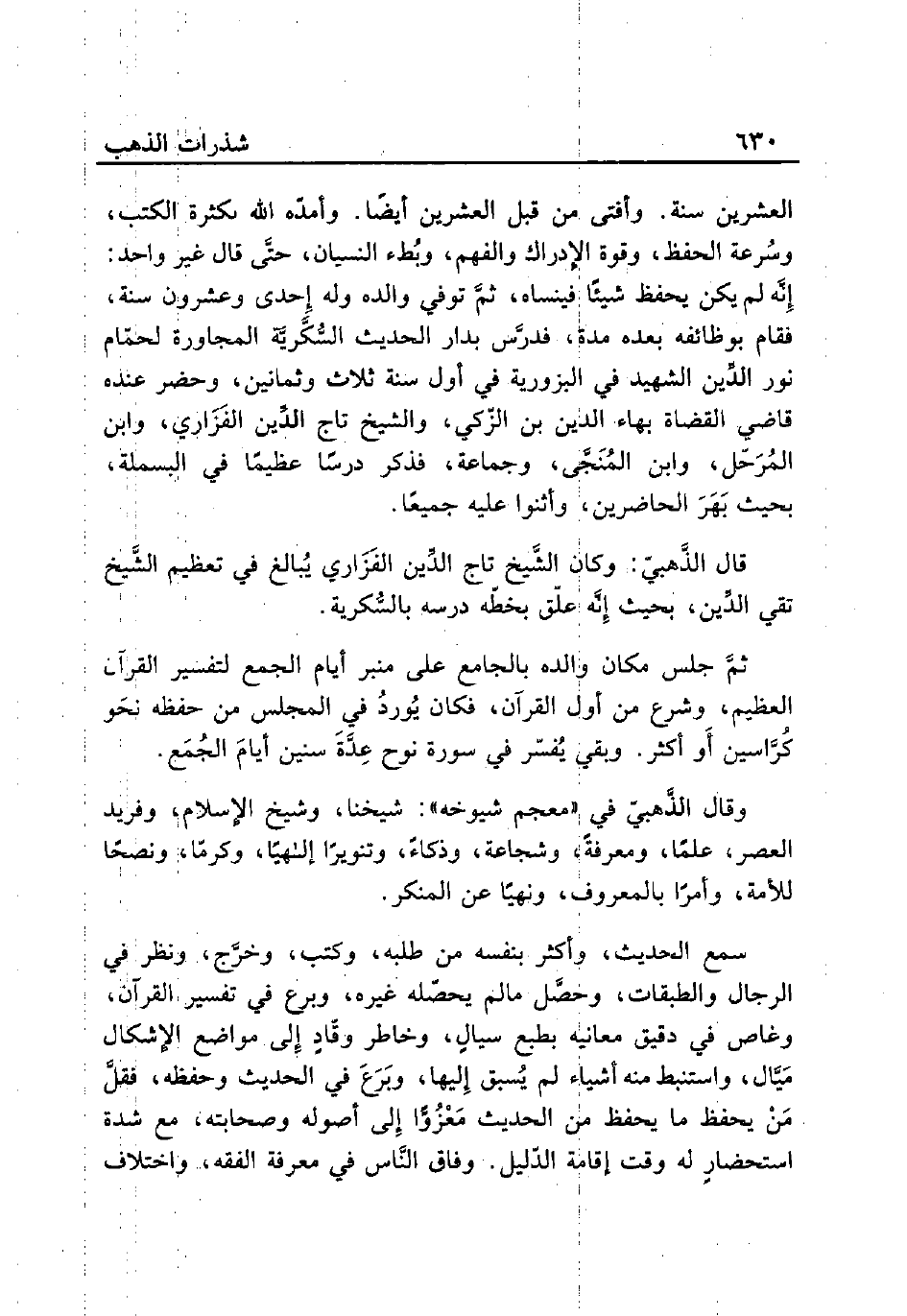 العشرين سنة. وأفتى من قبل العشرين أيضًا. وأمدّه الله بكثرة الكتب، وسُرعة الحفظ، وقوة الإدراك والفهم، وبُطء النسيان، حتَّى قال غير واحد: إِنَّه لم يكن يحفظ شيئًا فينساه، ثمَّ توفي والده وله إِحدى وعشرون سنة، فقام بوظائفه بعده مدة، فدرَّس بدار الحديث السُّكَّريَّة المجاورة لحمّام نور الدِّين الشهيد في البزورية في أول سنة ثلاث وثمانين، وحضر عنده قاضي القضاة بهاء الدين بن الزّكي، والشيخ تاج الدِّين الفَزَاري، وابن المُرَحّل، وابن المُنَجَّي، وجماعة، فذكر درسًا عظيمًا في البسملة، بحيث بَهَرَ الحاضرين، وأثنوا عليه جميعًا.