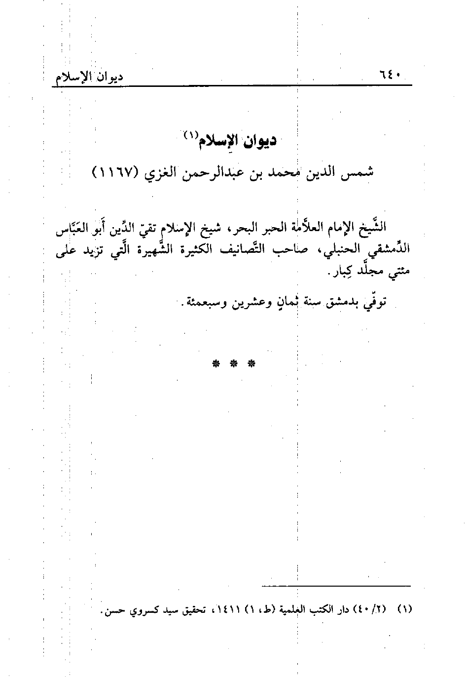 (¬1) (2/ 40) دار الكتب العلمية (ط، 1) 1411، تحقيق سيد كسروي حسن.
