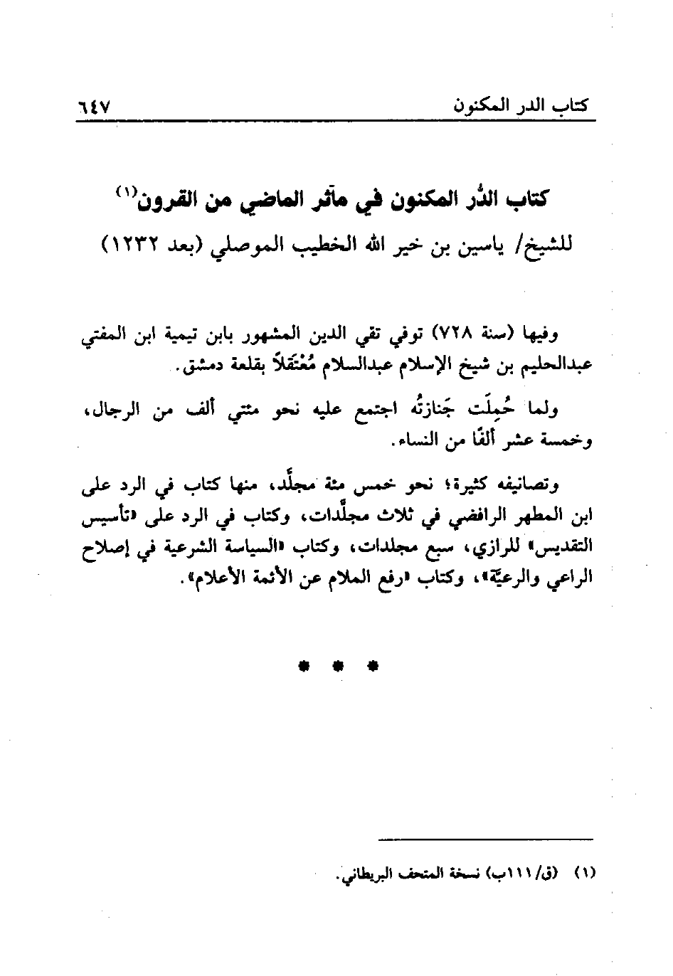 (¬1) (ق / 111 ب) نسخة المتحف البريطاني.