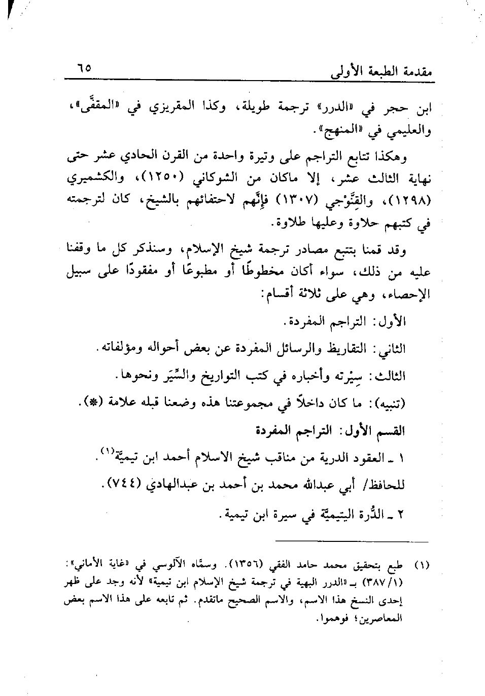 1 - العقود الدرية من مناقب شيخ الإِسلام أحمد بن تيميَّة (¬1).