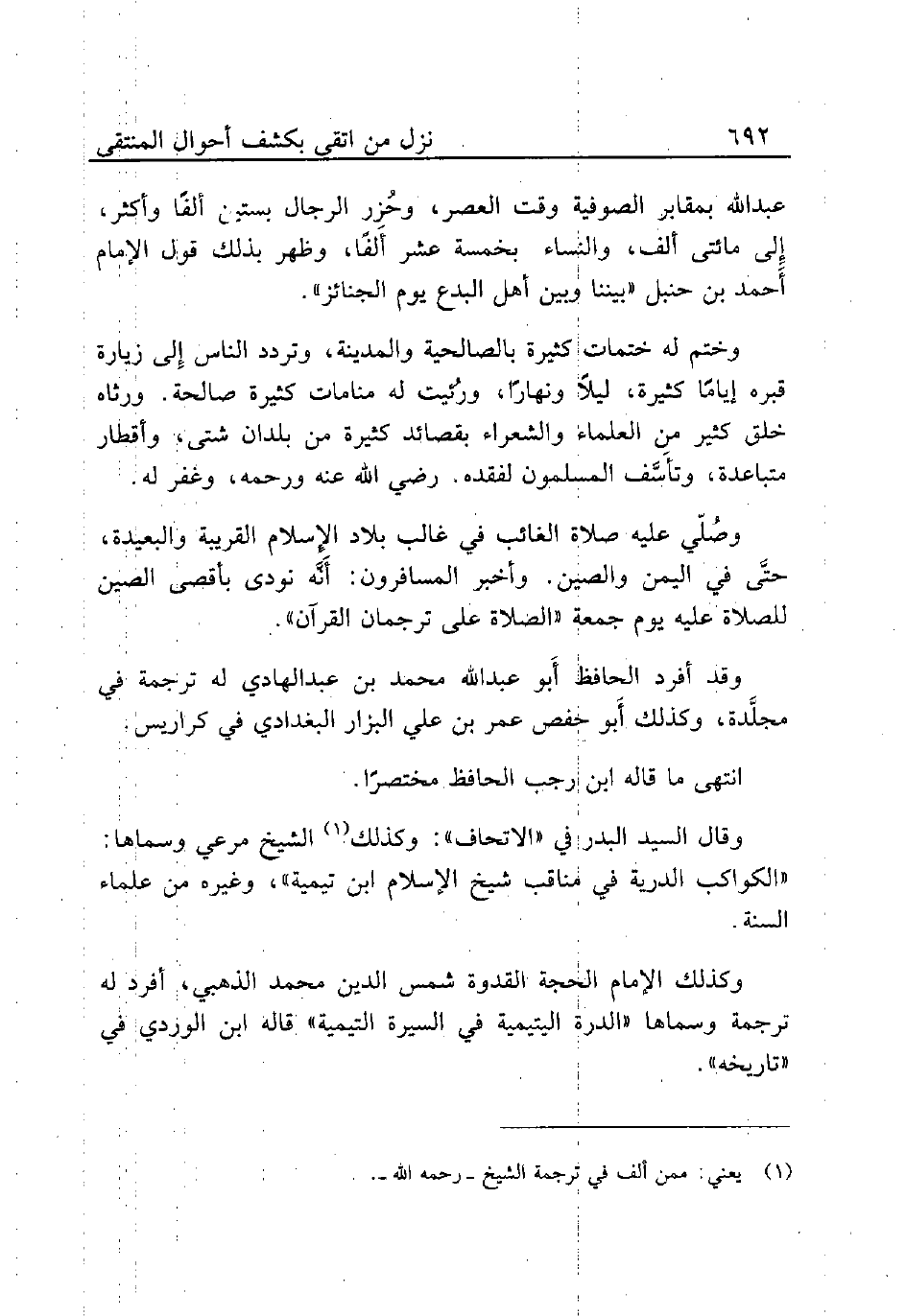 وقال السيد البدر في «الاتحاف»: وكذلك (¬1) الشيخ مرعي وسماها: «الكواكب الدرية في مناقب شيخ الإسلام ابن تيمية» وغيره من علماء السنة.