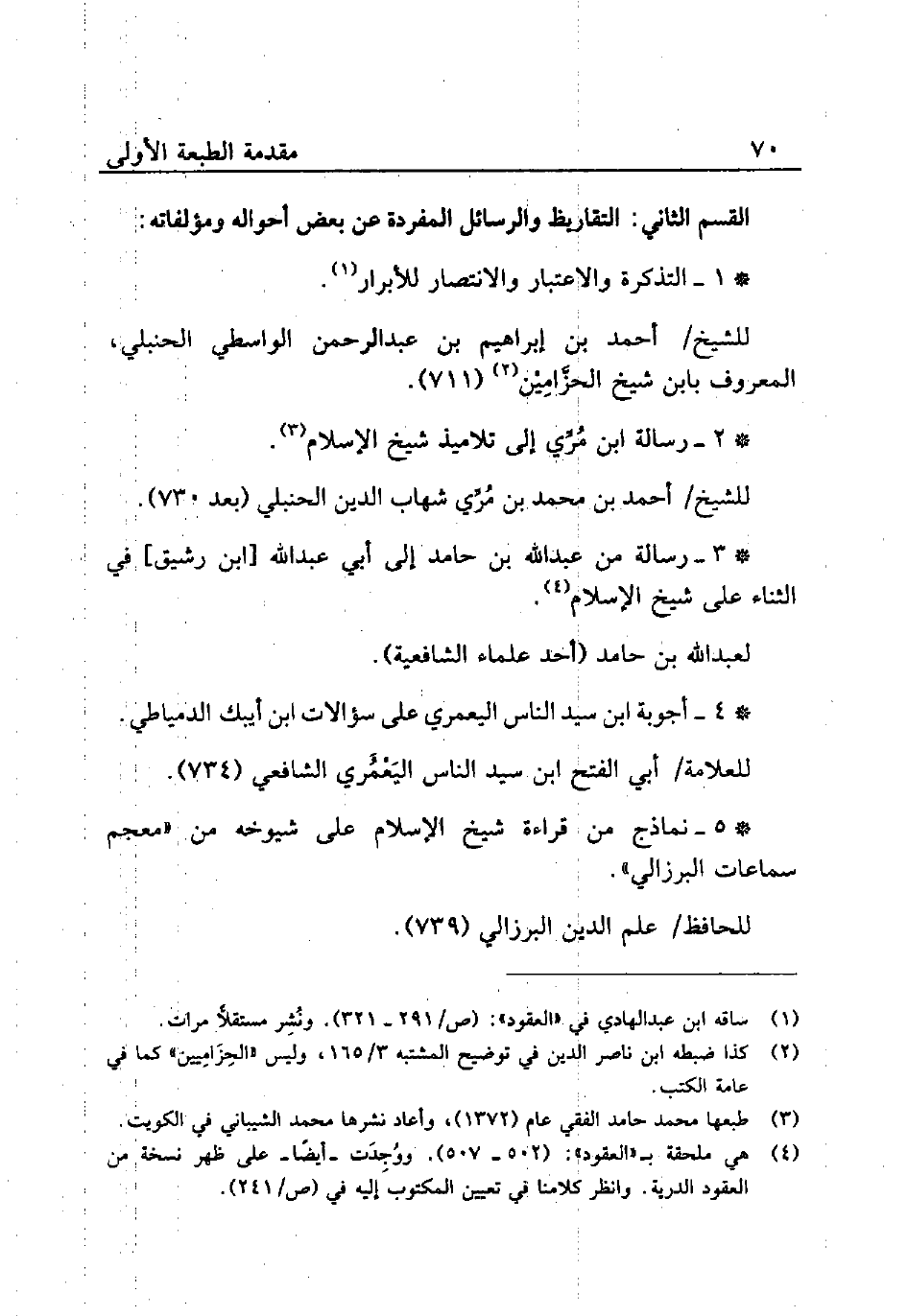 (¬3) طبعها محمَّد حامد الفقي عام (1372)، وأعاد نشرها محمَّد الشيباني في الكويت.