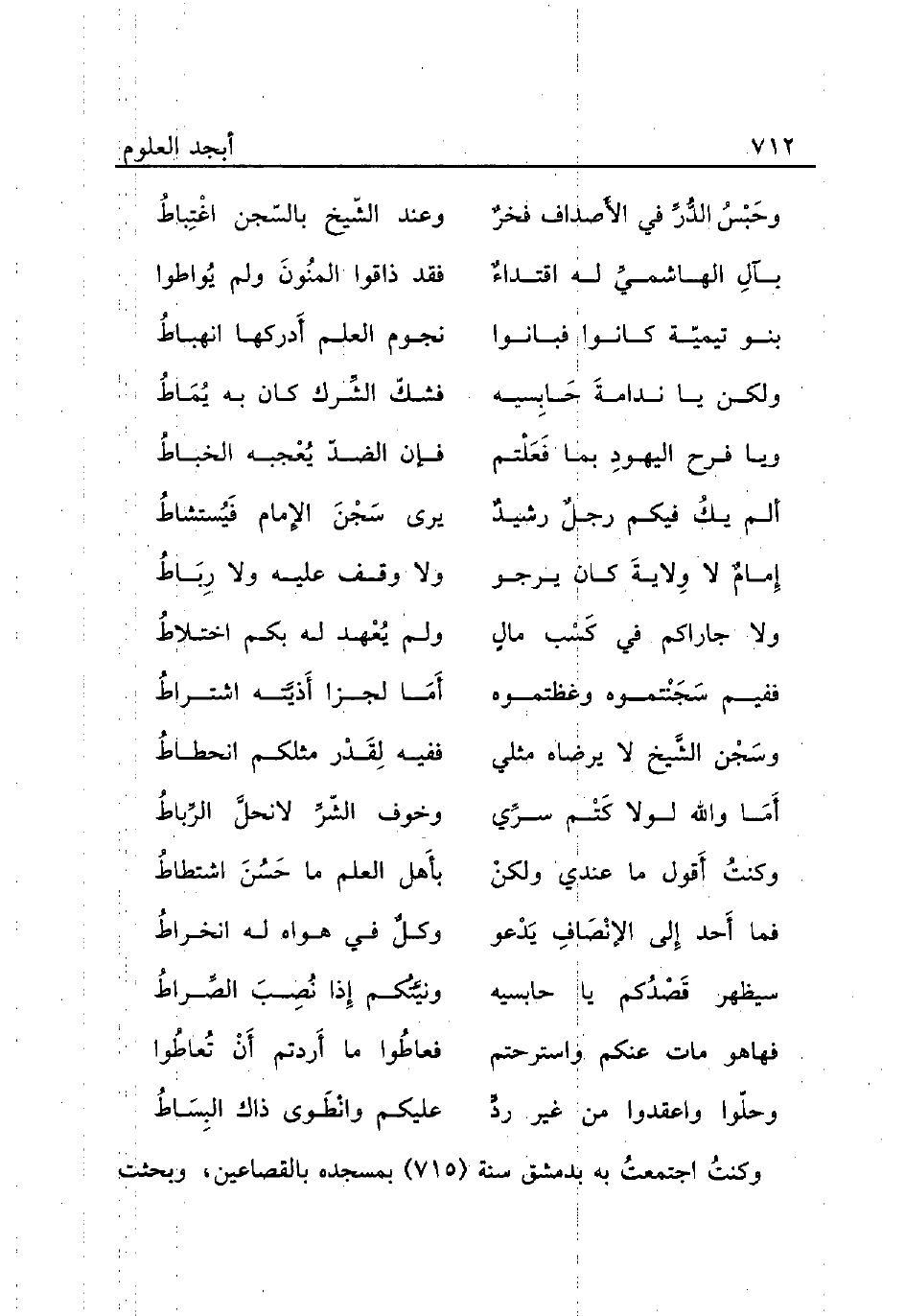 ألم يكُ فيكم رجلٌ رشيدٌ ... يرى سَجْنَ الإمام فَيُستشاطُ