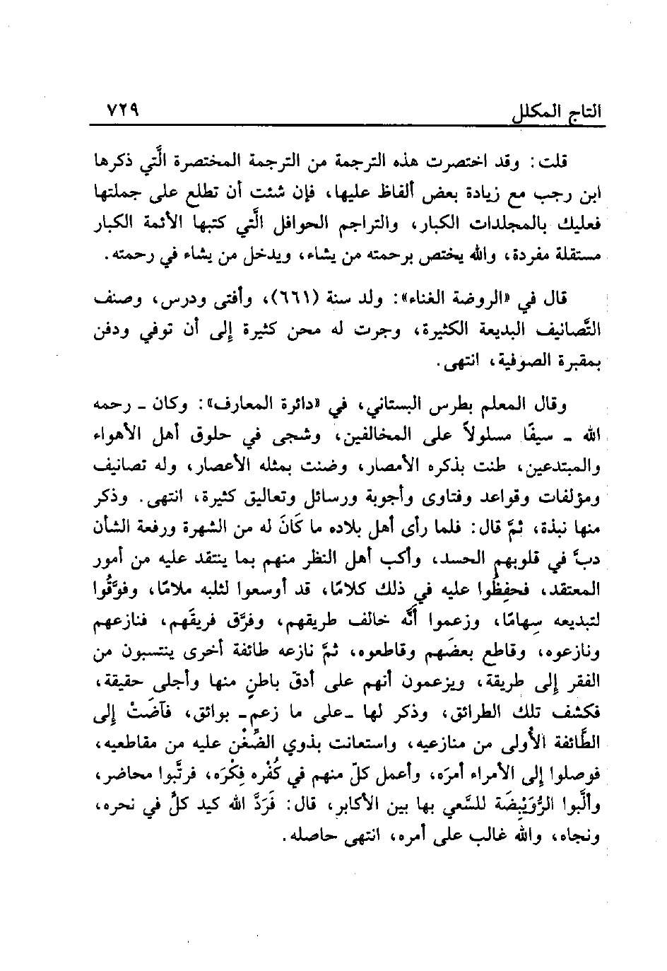 قلت: وقد اختصرت هذه الترجمة من الترجمة المختصرة الَّتي ذكرها ابن رجب مع زيادة بعض ألفاظ عليها، فإن شئت أن تطلع على جملتها فعليك بالمجلدات الكبار، والترجم الحوافل الَّتي كتبها الأئمة الكبار مستقلة مفردة، والله يختص برحمته من يشاء، ويدخل من يشاء في رحمته.