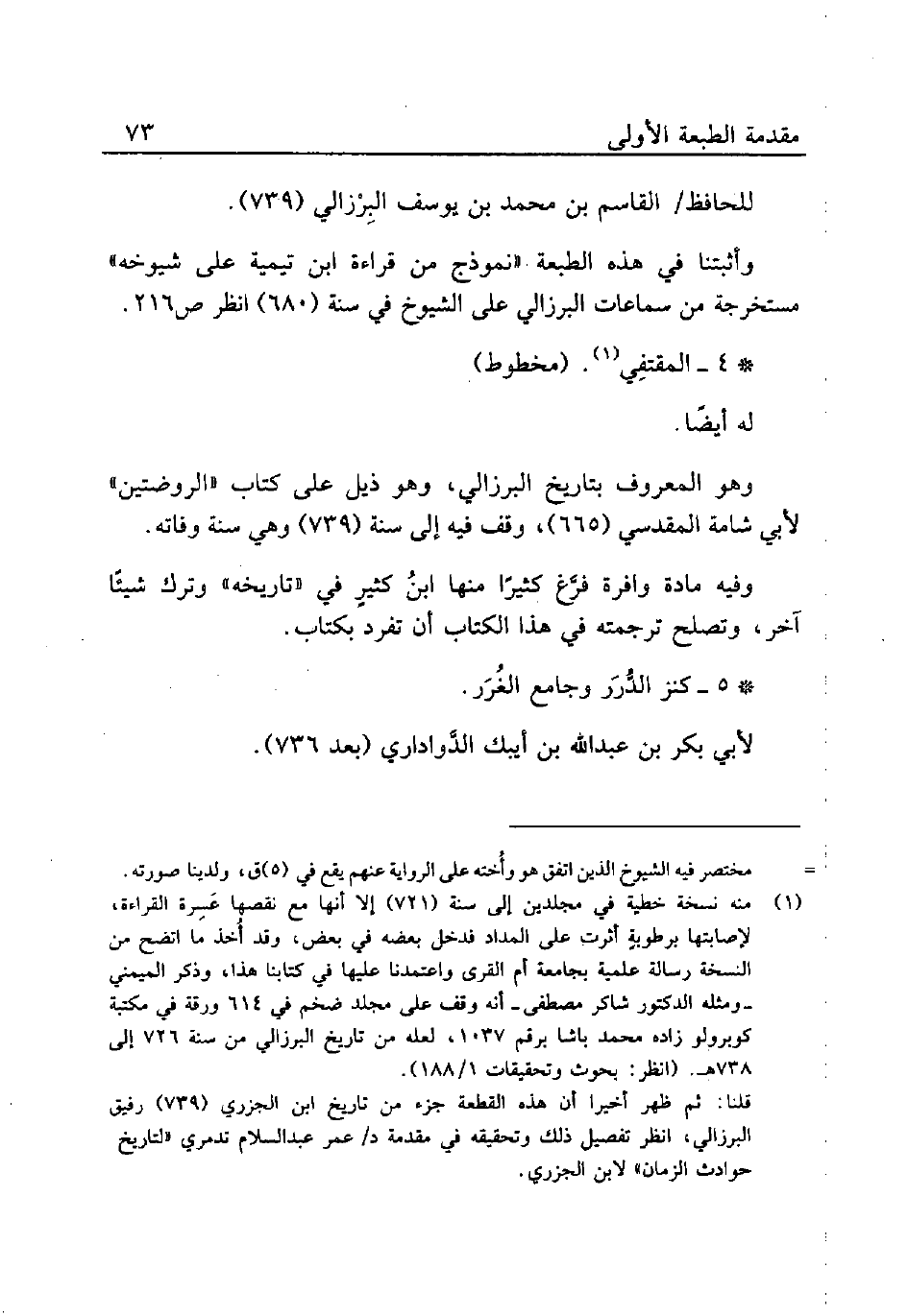 قلنا: ثم ظهر أخيرًا أن هذه القطعة جزء من تاريخ ابن الجزري (739) رفيق البرزالي، انظر تفصيل ذلك وتحقيقه في مقدمة د / عمر عبد السلام تدمري "لتاريخ حوادث الزمان" لابن الجزري.