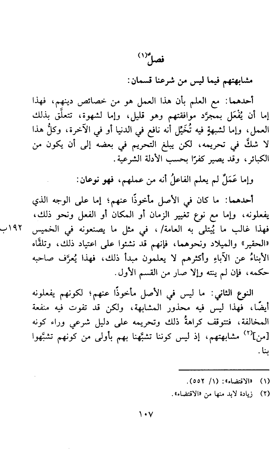 فصل ذكر الكلام في مشابهتهم فيما ليس من شرعنا